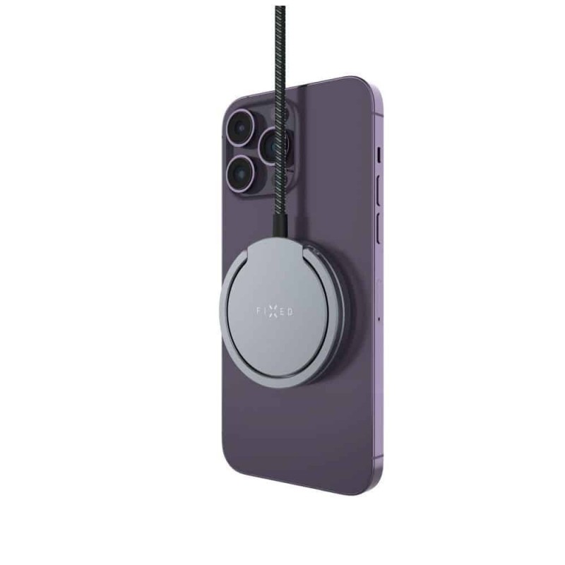 Fixed Magnetic Wireless Charger - Ring Holder, Universal, MagSafe, Qi2, 15W, USB-C, 1.2m Nylon Cable - Gray