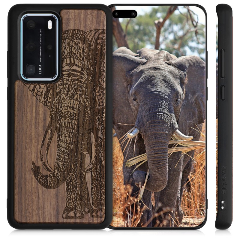KW Wooden Case Huawei P40 Pro - Elephant Motif Dark Brown (52352.06)