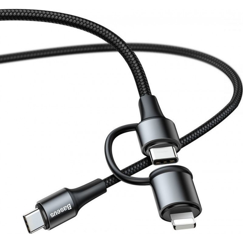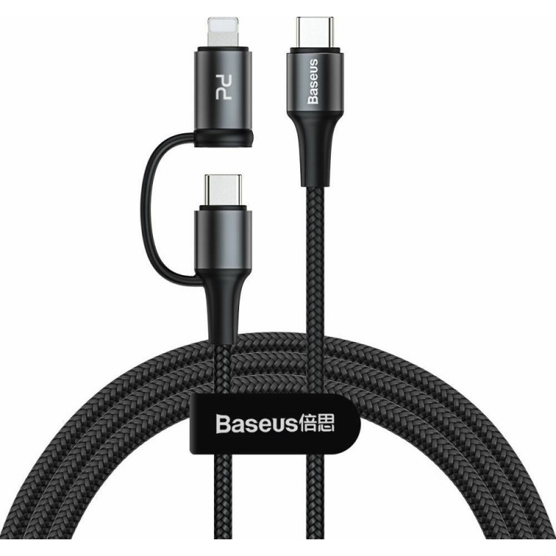 Καλώδιο γρήγορης φόρτισης από τη Baseus για συσκευές με υποδοχή Type C. Περιέχει αντάπτορα Lightning για συμβατότητα με Apple συσκευές. Είναι κατασκευασμένο από κράμα αλουμινίου με braided σχεδιασμό και νάυλον πλέξη, με σκοπό τη μεγαλύτερη αντοχή του στο χρόνο. Συνδυάζοντας 60W με ένταση ρεύματος 3A υποστηρίζει όλα τα σύγχρονα πρότυπα Power Delivery φόρτισης ενώ με την υποδοχή Lightning αποδίδει 18W με ένταση ρεύματος 2A για γρήγορη φόρτιση. Υποστηρίζει μετάδοση δεδομένων με ταχύτητα 480Mbps για γρήγορη μεταφορά δεδομένων, όπως φωτογραφίες και video, μεταξύ των συσκευών σας. Ενσωματώνει έξυπνα chip κυκλώματος για μεγαλύτερη σταθερότητα και αποφυγή υπερθέρμανσης. Ένα ανθεκτικό καλώδιο, μήκους 1m, για την κάλυψη των καθημερινών σας αναγκών.