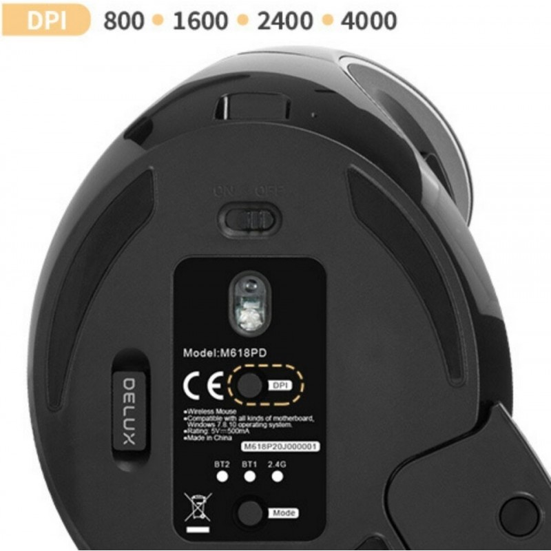Το Delux M618PD είναι ένα ασύρματο vertical ποντίκι, το οποίο συνδέεται στον υπολογιστή απευθείας με Bluetooth ή με dongle (πομποδέκτη) που τοποθετείται στη θύρα USB. Έχει οπτικό αισθητήρα που προσφέρει καλή ακρίβεια και το καθιστά ιδανικό για καθημερινή χρήση. Εφόσον χρησιμοποιηθεί σε γυαλιστερές επιφάνειες (πχ. γυάλινο γραφείο), είναι απαραίτητη η χρήση mousepad. Ο κάθετος (vertical) σχεδιασμός του ποντικιού, επιτρέπει στο χέρι να μένει σε μία πιο φυσική στάση.