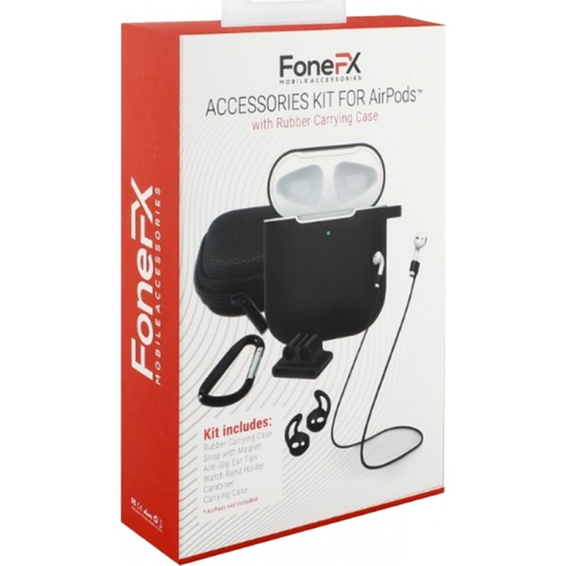 FoneFX Accessories Kit for Airpods 1/2 with Rubber Case Black