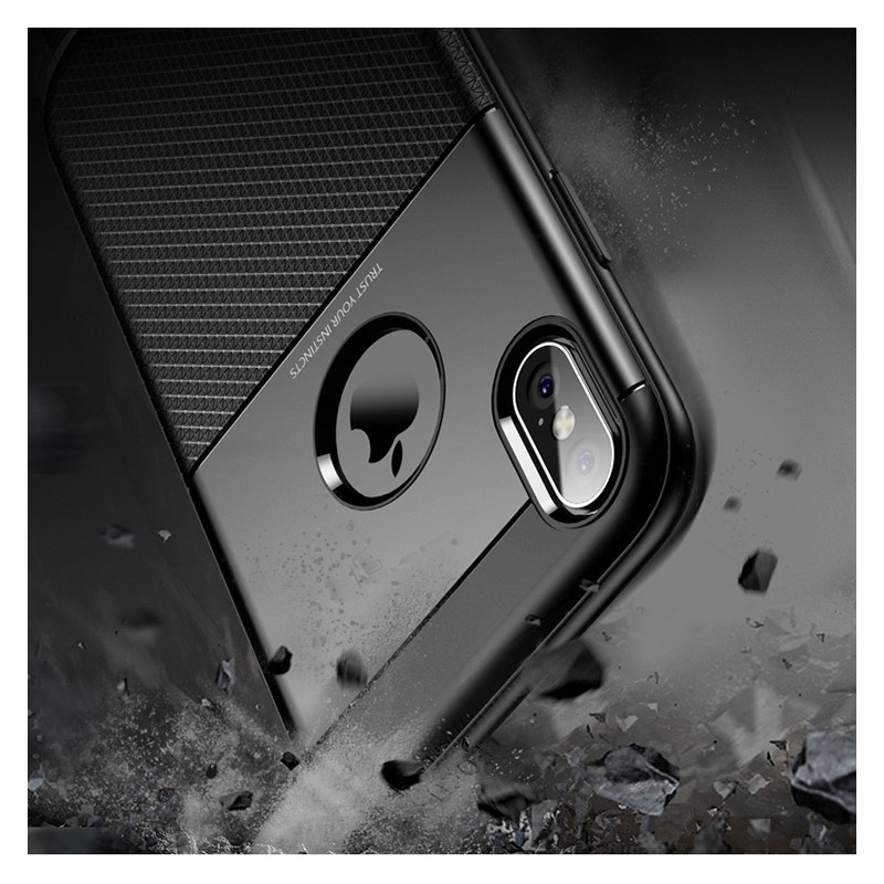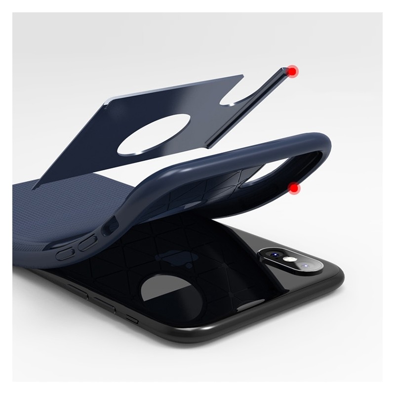Αποτελείται από ένα ελαστικό εσωτερικό στρώμα ματ θερμοπλαστικής πολυουρεθάνης (TPU) για να απορροφά τους κραδασμούς και ένα περιμετρικό πλαίσιο σκληρού πολυανθρακικού πλαστικού (PC) για να προστατεύσει το iPhone X/XS από γρατζουνιές, φθορές, πτώσεις ή χτυπήματα.