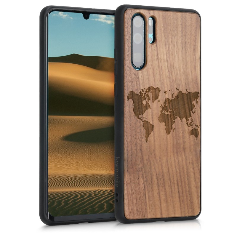 KW Wooden Case TPU bumper Huawei P30 Pro - Travel Outline Dark Brown (47425.03)