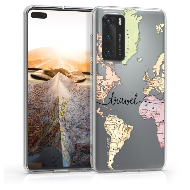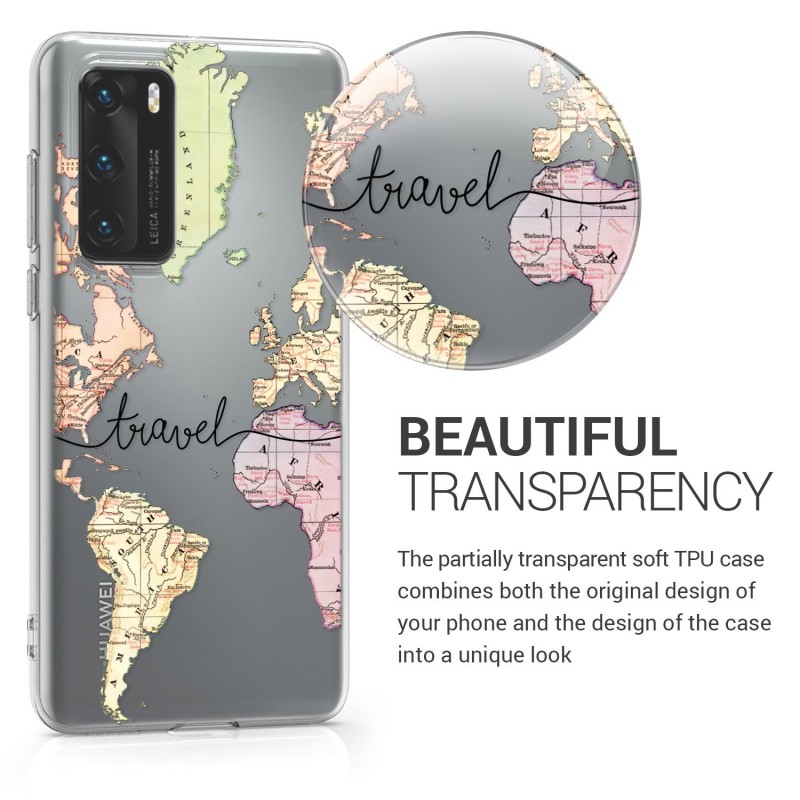 KW TPU Silicone Case Huawei P40 - Travel Black / Multicolor / Transparent (52162.01)