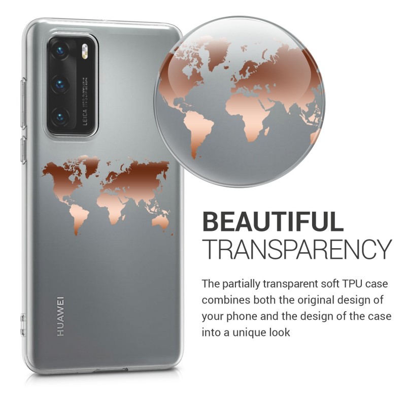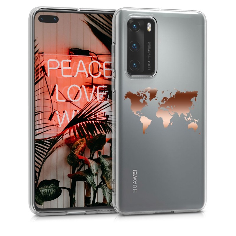 KW Crystal TPU Case Huawei P40 - Travel Outline Rose Gold / Transparent (50894.03)