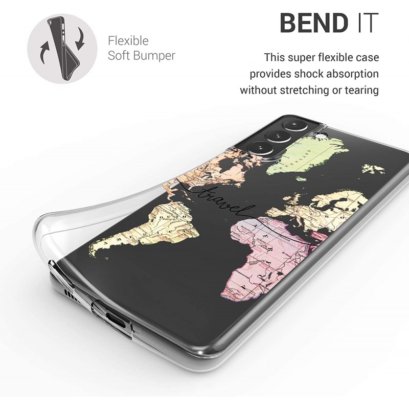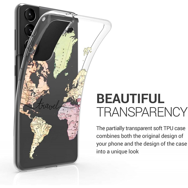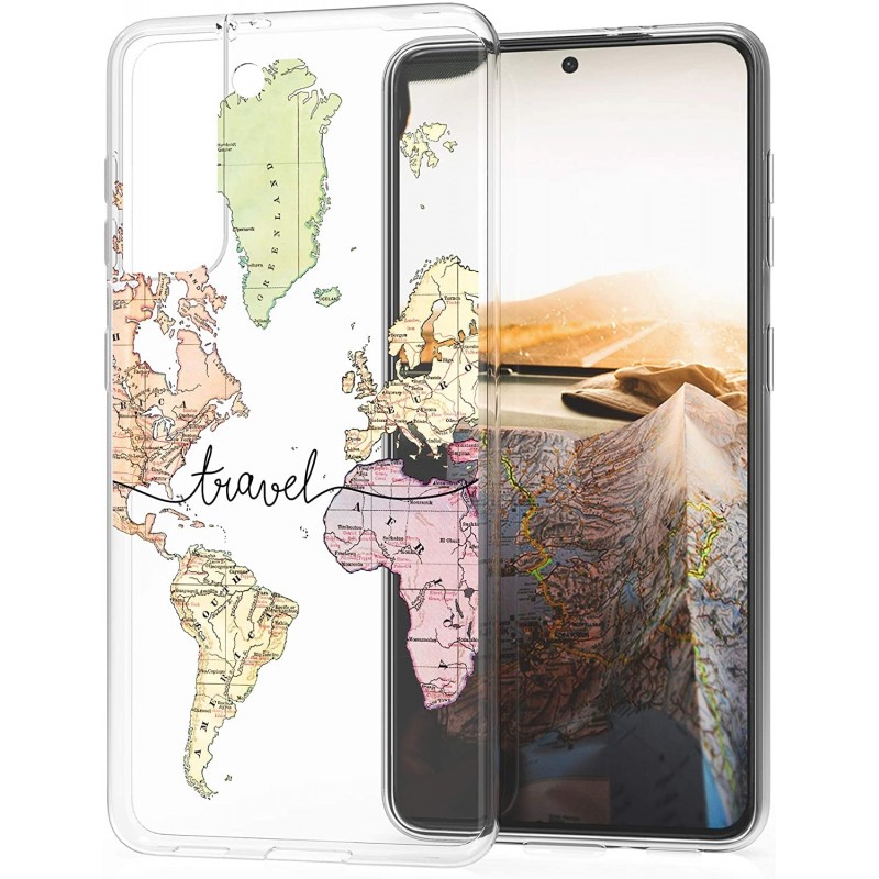 KW TPU Silicone Case Samsung Galaxy S21 - World Map Travel - Black / Multicolor / Transparent (54059.01)