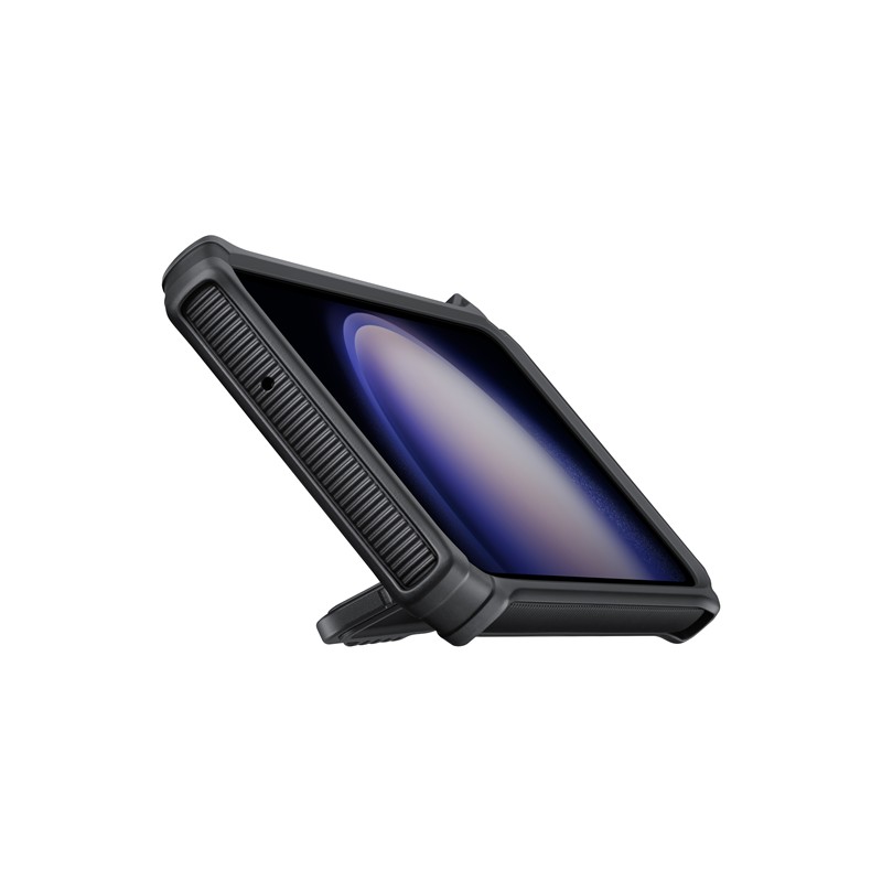 Η ναυαρχίδα της προστασίας του Galaxy S23 με την πιστοποίηση της Samsung. Κατασκευασμένη σύμφωνα με τα αυστηρά στρατιωτικά πρότυπα MIL-STD-810G-516.7 των ΗΠΑ, για πλήρης προστασία από κάθε είδους πτώση, γρατζουνιές και κακουχίες. Ακολουθώντας την πιστοποίηση ανακυκλωμένου περιεχομένου, η θήκη είναι κατασκευασμένη εν μέρει από ανακυκλώσιμο υλικό, ενώ διατίθεται σε φιλική, προς το περιβάλλον, συσκευασία από χαρτί. Ο στιβαρός σχεδιασμός ανταποκρίνεται στην πρόκληση σε περιβάλλον επιρρεπές σε ατυχήματα. Επιπλέον λειτουργίες στο πίσω μέρος. Η θήκη έχει σχεδιαστεί για να εξασφαλίζει σταθερό αλλά άνετο κράτημα. Μπορείτε να μεταφέρετε εύκολα την πιστωτική σας κάρτα στην υποδοχή κάρτας, να την αντικαταστήσετε με λαβή ή βάση στήριξης για ασφαλές κράτημα, ανάλογα με τις ανάγκες σας. Στο πίσω μέρος διαθέτει δύο ειδικά στηρίγματα , με δυνατότητα κλίσης 45° ή 60°, για άνετη παρακολούθηση video και multimedia περιεχομένου τοποθετώντας τη σε κάθε επιφάνεια όπου και αν βρίσκεστε.