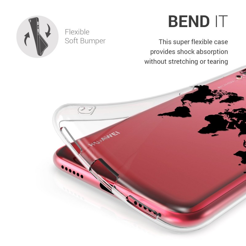 KW TPU Silicone Case Huawei Y7 2019 - World Map Transparent/Black (47659.05)